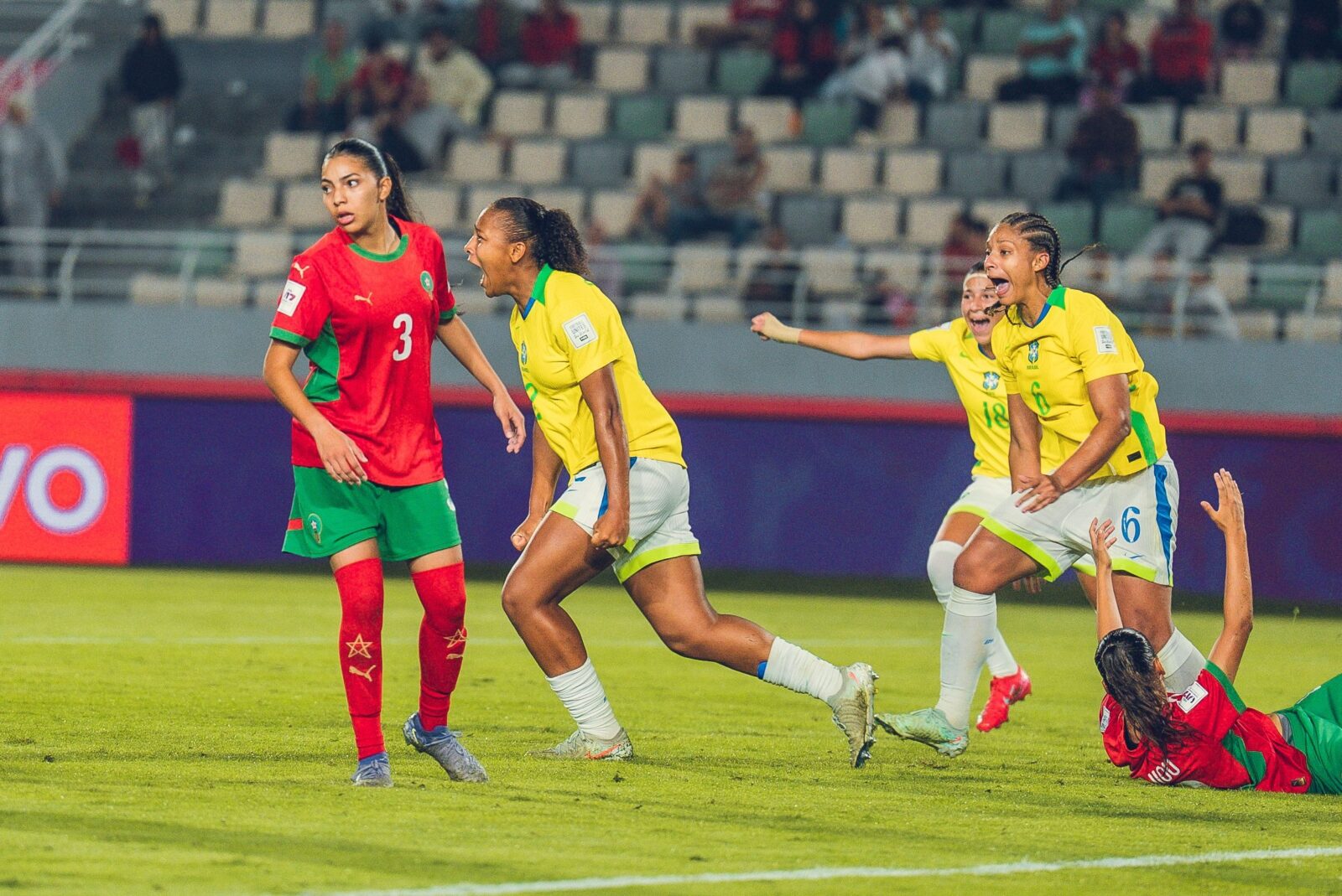 A Seleção Brasileira iniciou sua campanha na Copa do Mundo Feminina Sub-17 da FIFA com uma vitória por 3 a 0 sobre a anfitriã Marrocos na noite desta sexta-feira (17). O jogo de abertura do Grupo A foi disputado no Estádio Olímpico de Rabat.
