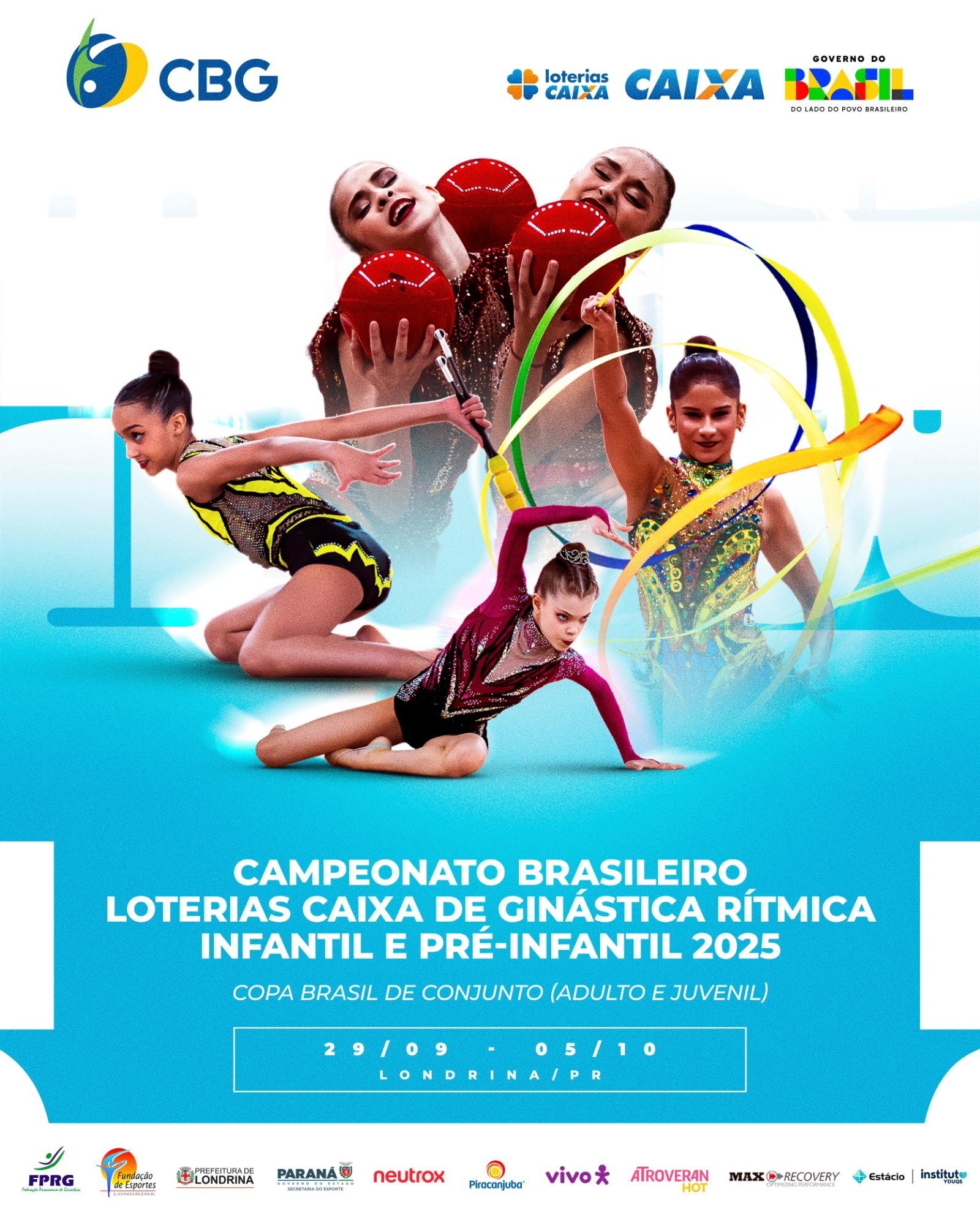 O Campeonato Brasileiro Loterias CAIXA de Ginástica Rítmica Pré-Infantil e Infantil começa nesta terça-feira (30) em Londrina, no norte do Paraná, região que é historicamente um celeiro de talentos da modalidade. Faz parte da programação também a Copa Brasil Loterias CAIXA de Conjunto de Ginástica Rítmica Adulto e Juvenil. Os eventos, que têm lugar no Ginásio de Esportes Professor Darci Cortez, popularmente conhecido como Moringão, vão se estender até o domingo (5).