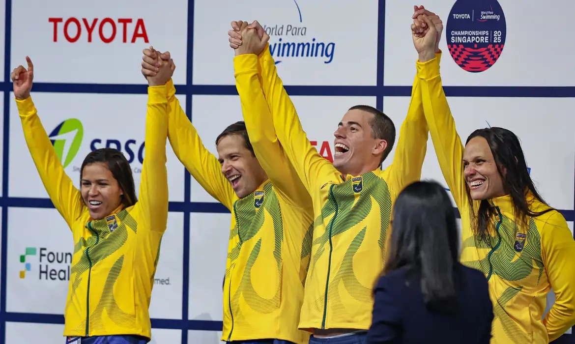 Com direito a um recorde mundial, o Brasil conquistou, nesta quarta-feira (24), mais seis medalhas (dois ouros, três pratas e um bronze) no Mundial de natação paralímpica que está sendo disputado em Singapura.