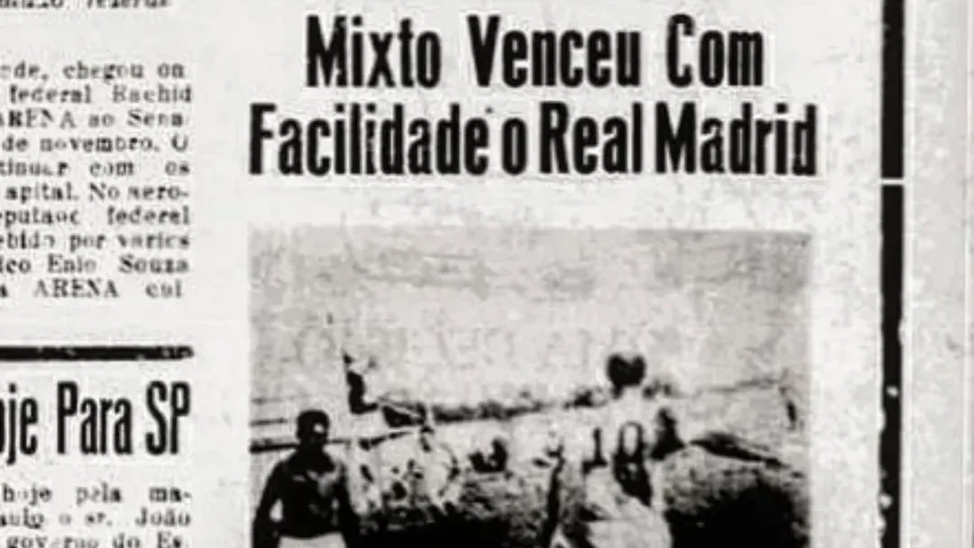 Na última terça-feira (17), em meio às estreias clubes brasileiros no Super Mundial de Clubes, nos Estados Unidos, o perfil “Cuiabá das Antigas” resgatou um pedaço marcante da história do futebol mato-grossense: a vitória do Mixto por 3 a 0 sobre o então estreante Real Madrid de Cuiabá, em novembro de 1970, durante o Campeonato Estadual. O jogo foi registrado pelo jornal O Estado de Mato Grosso, cujo recorte foi reproduzido na postagem.