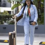 A camisa apresenta gola verde e detalhes em azul. Na parte interna, há um losango com a inscrição “Força Beleza”, que celebra o equilíbrio entre confiança, força, feminilidade e competitividade.