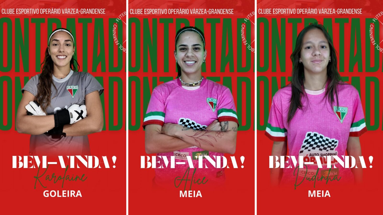 O Operário anunciou a chegada de 12 novas jogadoras para reforçar o elenco feminino que disputará o Campeonato Mato-grossense 2025. Entre as contratadas estão a goleira Karolaine Sponchiado e as meio-campistas Alice Campos e Dudinha, todas ex-Mixto. As contratações foram feitas para dar mais competitividade ao grupo, que estreia no estadual diante do rival alvinegro, no dia 30 de agosto, no Estádio Dutrinha, em Cuiabá.